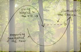 The awareness of the old narrative and of the stuck places infiltrated us in the best of ways at the end of the first day of our three day gathering.   Someone suggested what we needed to do was create a vision of the new.  Ordinarily I might agree.  In this case though, that didn’t feel right.  It felt like it would take us further off track given that our roomful of people were geographically stretched from coast to coast across two countries with countless “systems”?