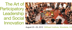 One of the names we use for this type of experiential learning is the Art of Participatory Leadership because it also calls forth a new set of leadership skills required to deal with complexity and social innovation, quite different from how we think about traditional leadership.  Participatory leadership focuses on participation and engagement strategies, knowing from experience there is wisdom and knowledge that exists within a group, a team, an organization, a system.  When we make it visible in a group, it moves into the realm of collective wisdom, knowledge and understanding leading to a different kind of action and ultimately different results.
